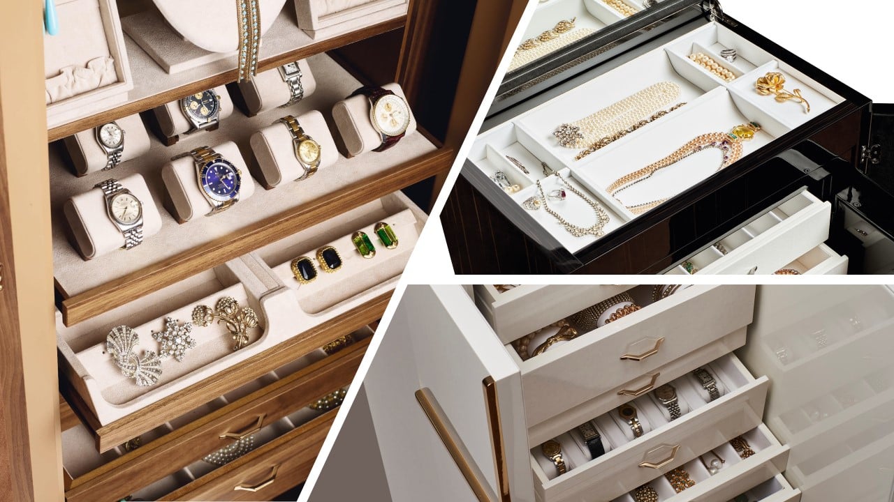 Jewelry deserves more than ordinary storage. In contrast to commercial safes, luxury safes provide specialized drawers and shelves designed to accommodate various types of jewelry. Observe the following photos of Agresti safes, where jewelry drawers are meticulously crafted to showcase a variety of exquisite pieces.